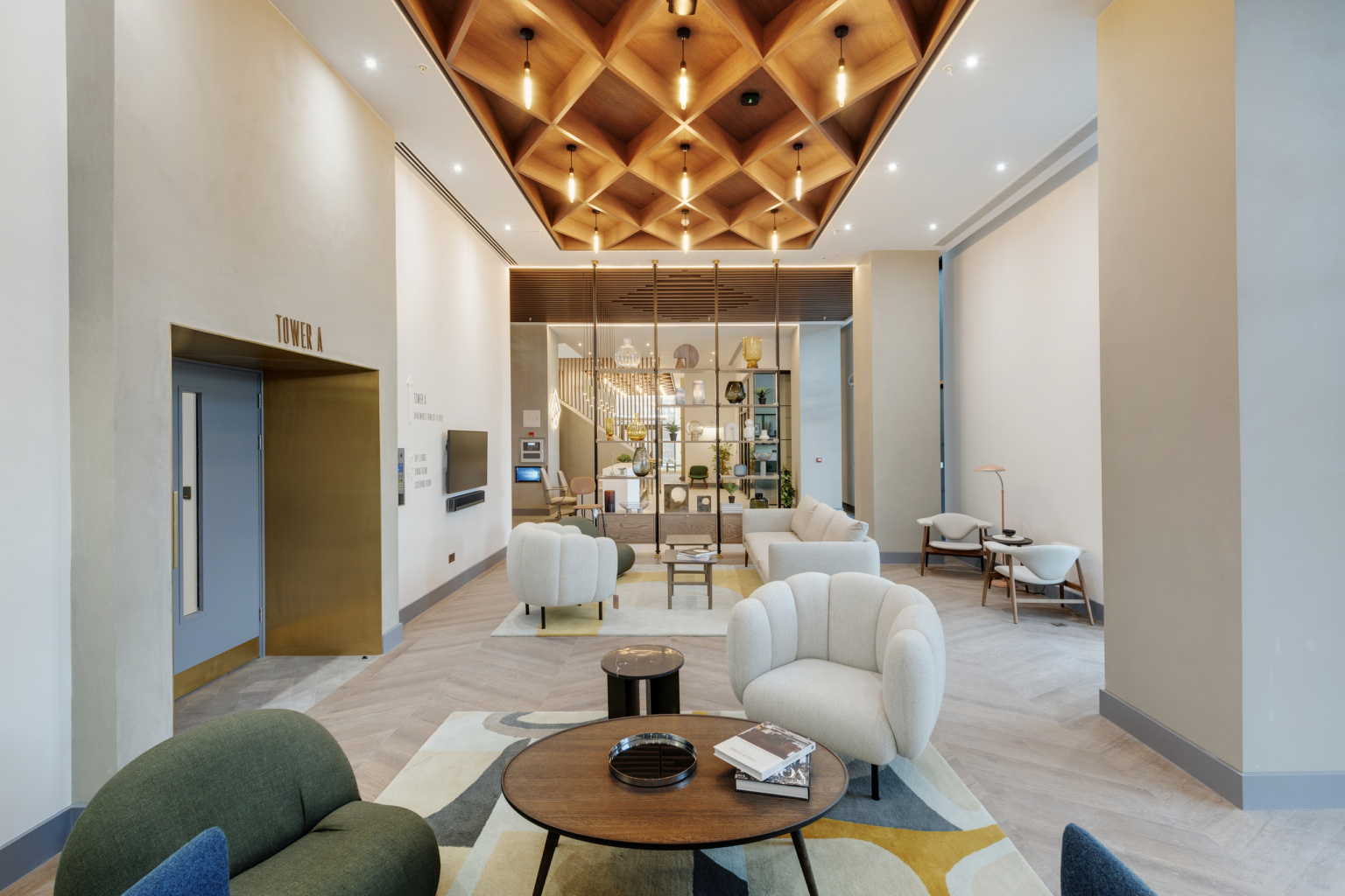 @tendegreescroydon is a build to rent scheme operated by @greystar with interiors which have been largely influenced by the modernist period. There are touches of brass, lots of timber and a deep teal colour used to keep the base palette consistent throughout the building while giving scope and variety for each space to develop.
