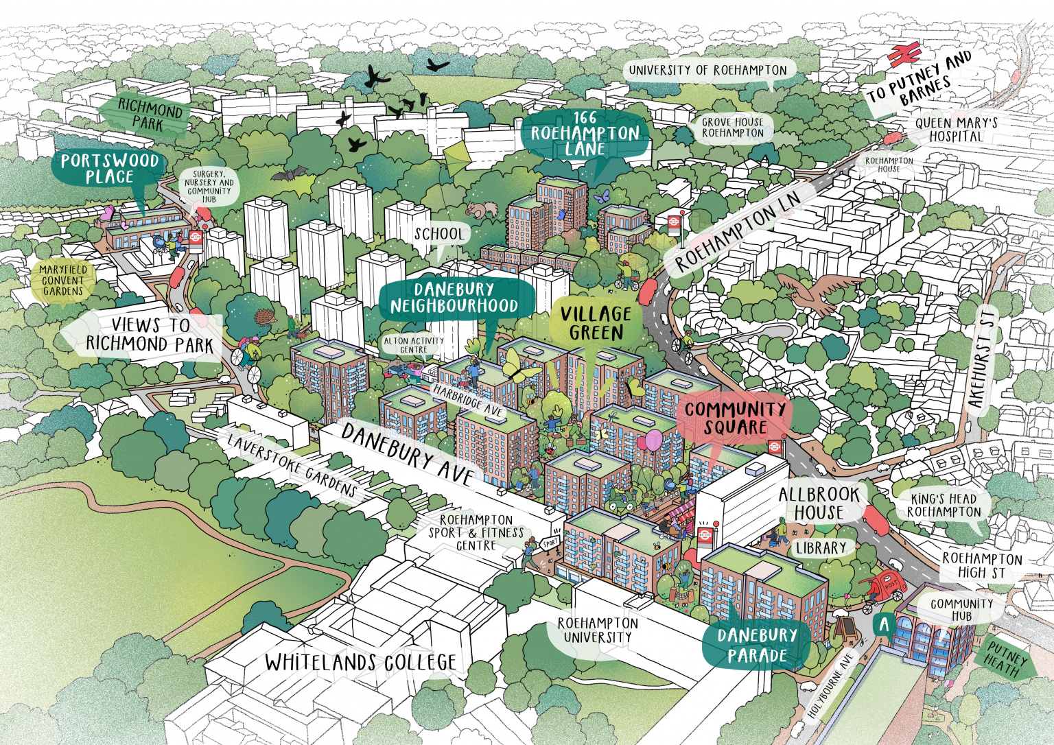 In London’s largest regeneration ballot, residents voted overwhelmingly in support of Wandsworth Council’s vision for a long-term estate renewal plan for Roehampton’s Alton estate, developed by HTA Design in collaboration with the council and local community. The plans include up to 650 new homes and over 50% affordable housing.
