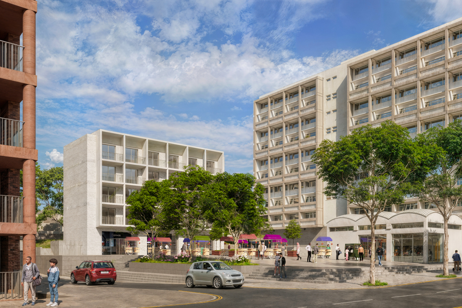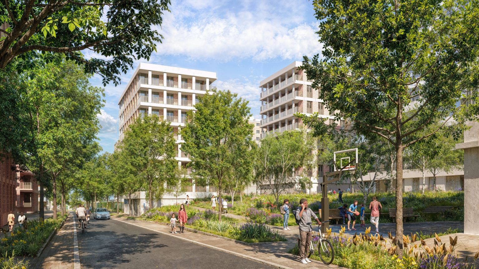 The design builds on the estate’s distinctive landscape and mid-century character, creating new homes, civic buildings, and green public spaces that encourage connection and everyday activity. More than 90 engagement events helped shape the proposals, ensuring they reflect the needs and aspirations of local residents.