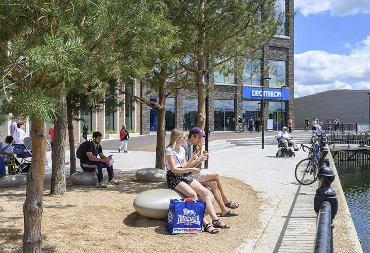 Despite its central location and excellent transport links, the area had no identifiable centre and a lack of neighbourhood cohesion. The landscape was car dominated with extensive parking for the retail, fast roads and was ecologically barren. Decathlon were an anchor tenant on the site and their retail space had to be re-provided within the site boundary.