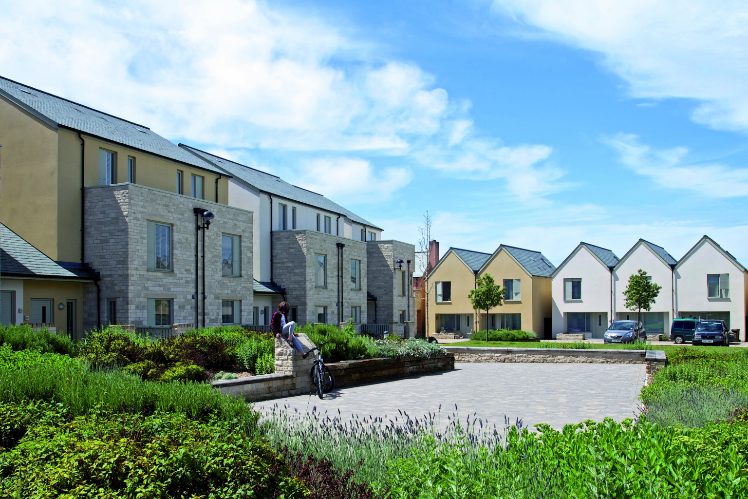 ‘Eco-Interiors’ were used for the internal elements of the homes, including water-saving fittings, the option for rainwater harvesting and smart energy meters. To further reduce the development’s carbon footprint, all the windows/doors are from sustainably sourced timber, the roofs are natural slate, every house has a bicycle shed, and the scheme incorporates an all-electric car club.