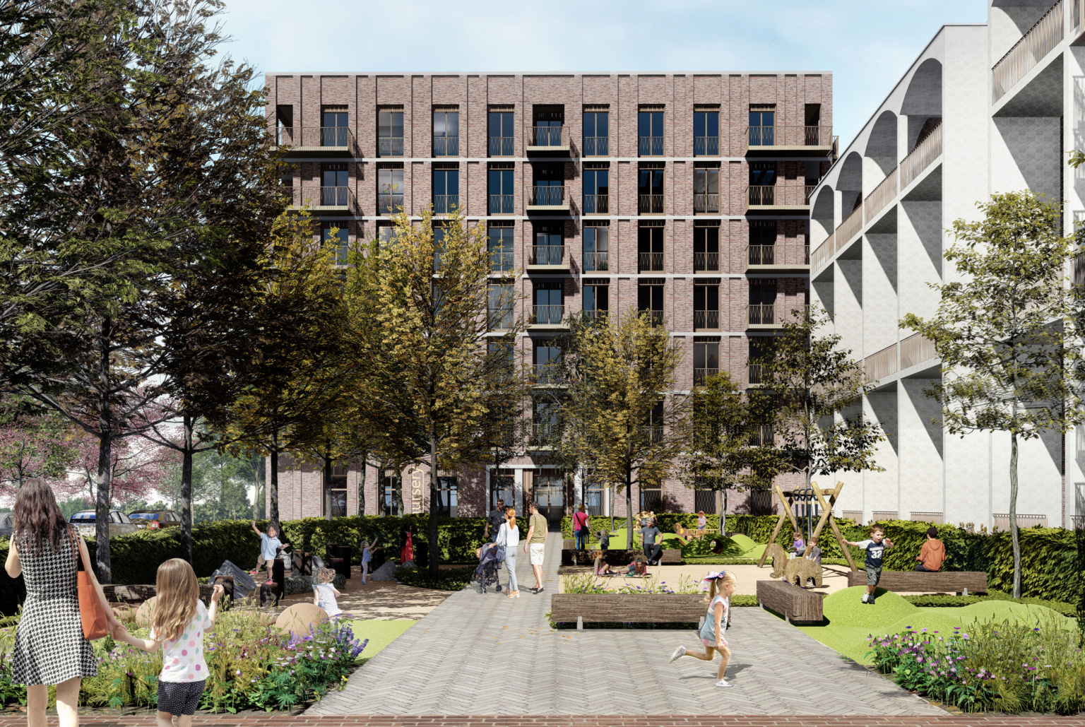 Kidbrooke Park Road is the regeneration of a brownfield site to create 117 well designed homes with public realm and a nursery that caters to both residents and public. The proposed scheme will be 100% affordable and achieve net zero carbon. HTA Planning have been strategic in their engagement through consideration of key planning and development issues, options, and risks. They have led a multidisciplinary team on identifying stakeholder interests, key design paraments and meaningful engagement with residents to secure an exemplary scheme. The project will kickstart the delivery of 500 London Affordable rent homes and new community facilities, by delivering new homes and a nursery as well as significant environmental and social benefits.