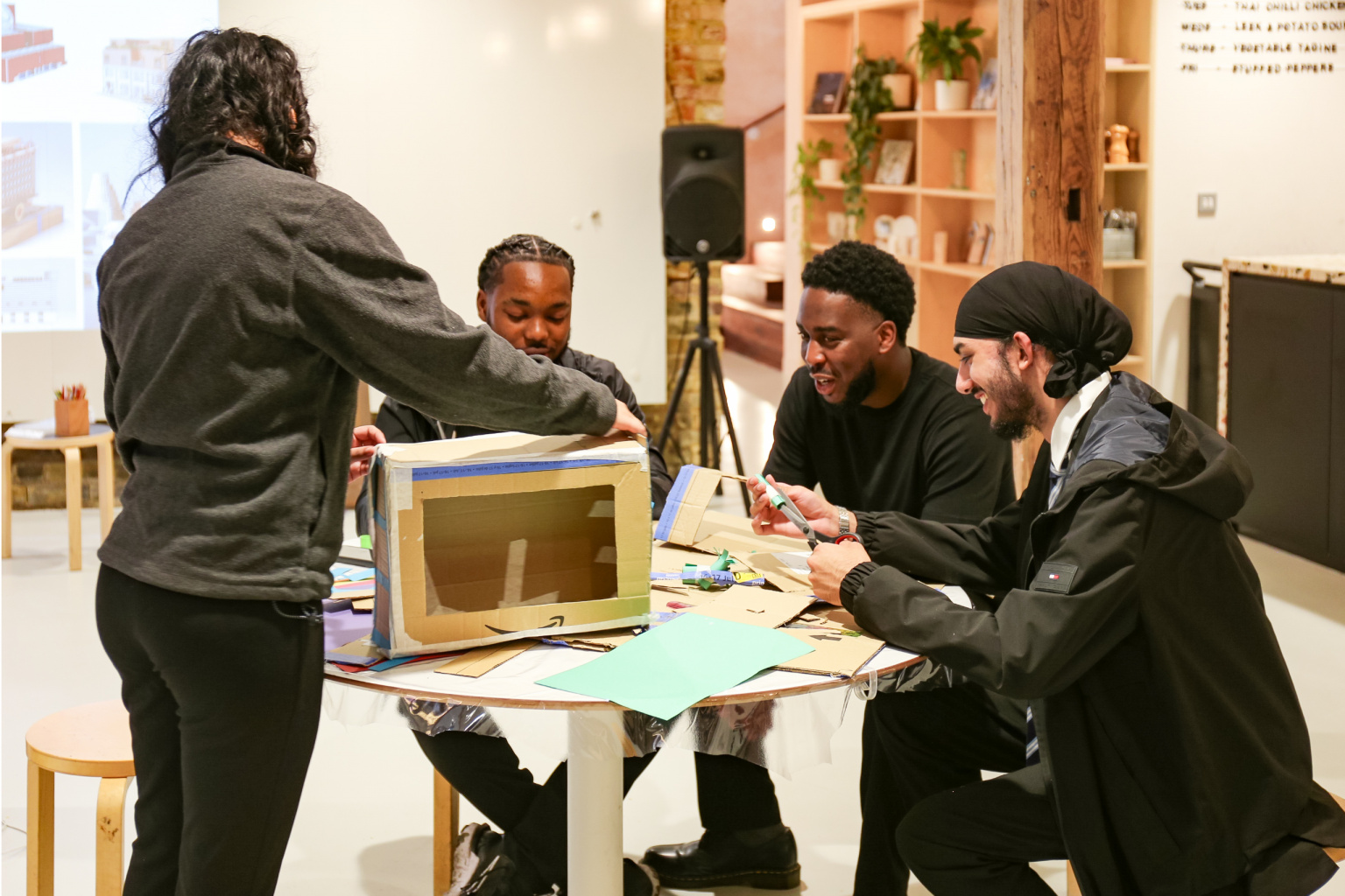 Last month, HTA BLACC group teamed up with community development organisation BADU to deliver an interactive group model-making workshop for a group of young people. This session was led by Architectural Apprentice Sia Musa, Part II Architectural Assistant Aaliyah Lawal, Outreach Lead Shawn Adams, and Architect Tanatswa Borerwe.