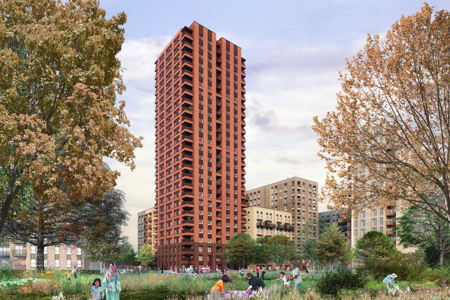 This scheme will deliver 2,028 new homes across various tenures and ensures homes will be provided for all existing residents. There will be over 1,000 affordable homes, with nearly 400 larger family homes across a range of building types including a 26-storey tower, perimeter blocks, and townhouses.