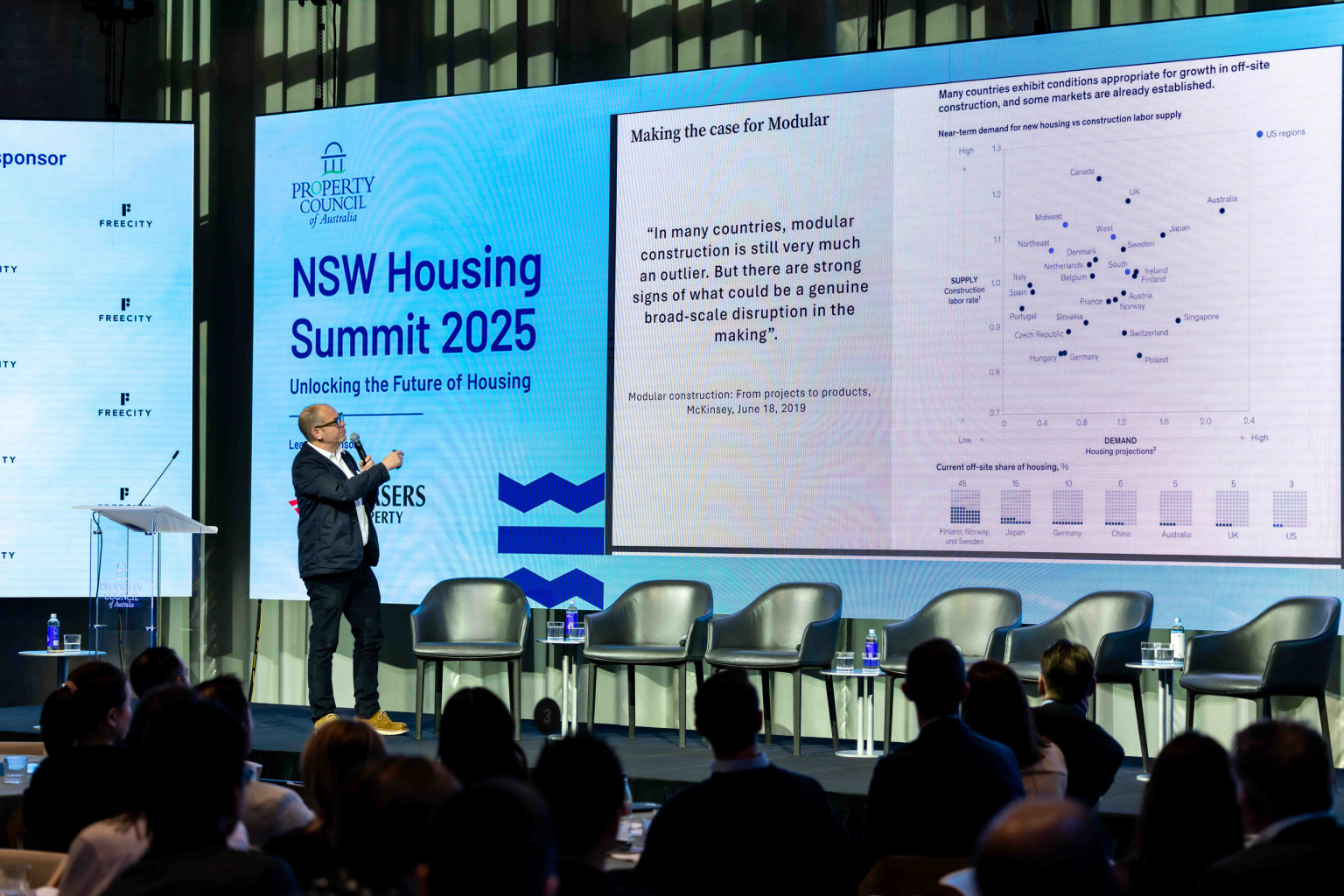 Simon Bayliss, HTA’s Managing Partner, is in Sydney this week speaking at the Property Council of Australia’s New South Wales Housing Summit. His talk, Building Faster and Smarter with Modular, shared lessons from HTA’s decade of experience delivering modular homes in the UK. We’re advising local developer Freecity on integrating volumetric modular construction and advocating its benefits to NSW government and industry leaders.