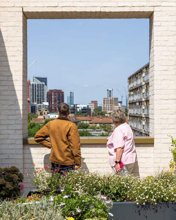Above the civic functions, Aylesbury Square delivers 122 homes, including one, tw0, and three-bedroom apartments. The scheme offers a 50/50 split between private sale and affordable tenures (shared ownership and target rent). Among these are 23 homes designed specifically for residents over the age of 55. These feature dual-aspect layouts, open-plan living areas, and full-width balconies overlooking the square, responding to accessibility needs while providing generous, adaptable space.