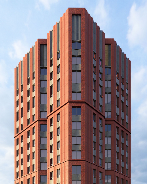‘Botanical House’ comprises a 36-storey tower and 9 storey mansion building connected via a central entrance pavilion. Key to the design was a cohesive strategy for colour, materiality, grid, and componentry, using a variety of earthy terracotta finishes. Although at contrasting heights, the tower and mansion block share a consistent language in the façade design and materiality, while the crown of the tower establishes a distinct identity.