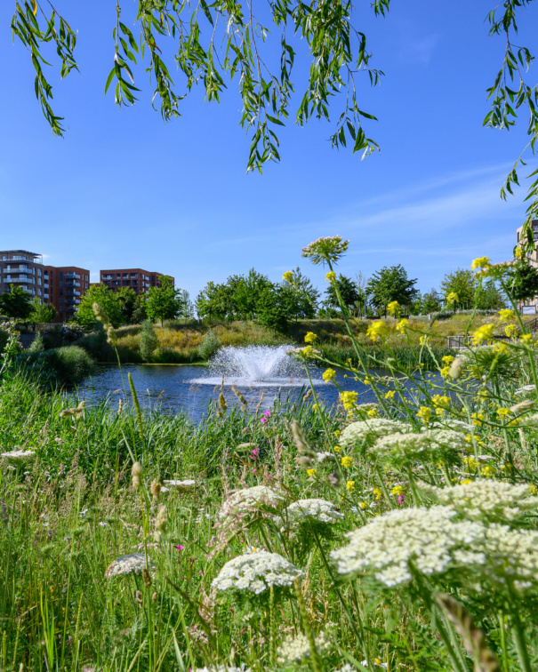 In 2017 Berkeley Homes appointed HTA and the London Wildlife Trust to lead a team of experts to remodel and rewild an underused open space which had been initiated at the start of this 30-year estate regeneration programme. The project delivers on its goal to significantly increase biodiversity and has been recognised with the Mayor’s Award for Sustainable and Environmental Planning and the Landscape Institute Presidents’ Award and the Sir David Attenborough Award for Enhancing Biodiversity.