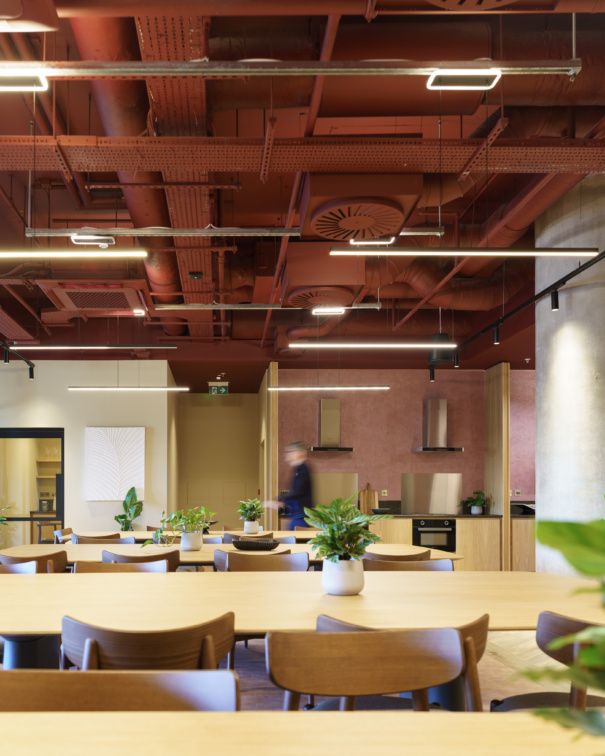 The communal areas offer a range of facilities, from shared kitchens and dining areas to co-working spaces, a gym, a member’s club and bar, game rooms, a library, a prayer room, and a roof terrace. Outpost’s vision for these generous shared spaces added a further layer of richness and personality, including introducing a spa beside the gym and the grand spiral staircase that connects the roof terrace to the bar.