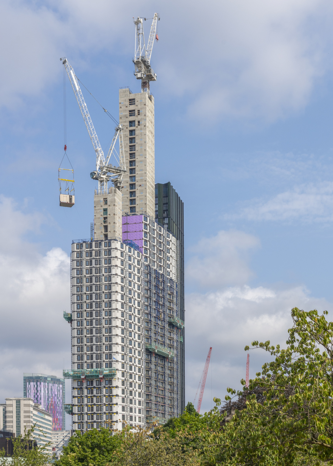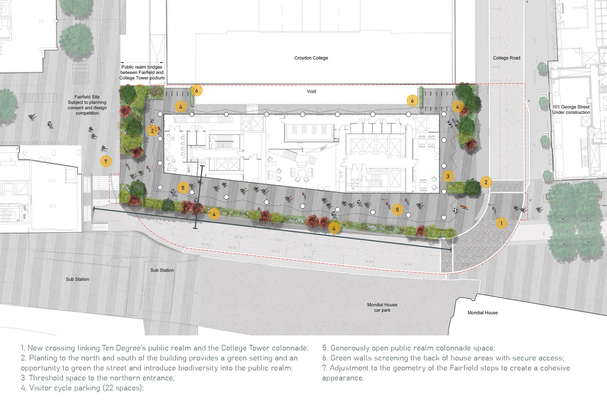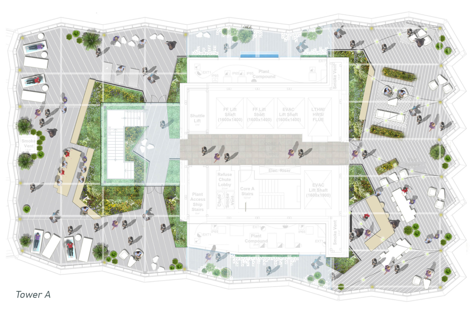 The co-living amenities at College Road provide residents with over 2,800 sqm of shared space. During the design process, we considered different options for the placement of communal spaces. We decided to create spaces at the entrance to capture daily activity and a secondary set of shared spaces at the top of the tower. We believed that providing diverse and accessible shared spaces would encourage their use and enhance the living experience for residents. To further support this vision, we collaborated with the operator Outpost, who will oversee a programme of community events in the shared spaces to help residents get to know each other and the building.