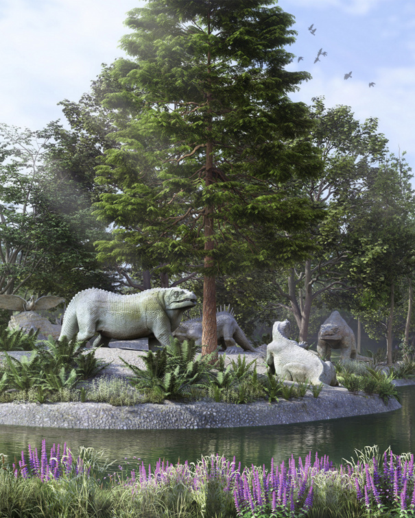 The regeneration proposals will reveal and restore the Grade I listed Geological Court, which includes the Tidal lakes and Dinosaur sculptures as well as the Grade-II listed Italian Terraces, while creating a park that is inclusive, biodiverse, resilient to climate change, and adaptable for a wide range of events and activities. New visitor facilities include a Dinosaur themed play area, a Visitor Centre, heritage trails, and reinstating the Grand Centre Walk to its full width reconnecting it to a new landmark gateway. The landscape design approach maximises park ecosystem service benefits and prioritises accessibility, to ensure that the park can be enjoyed by the wider community while boosting biodiversity.