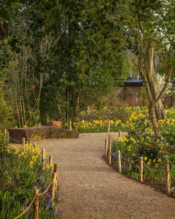 The meadows at Frogmore House instilled a sense of beauty and calm that we sought to echo. A secluded woodland path in Buckingham Palace Gardens, which she particularly enjoyed, inspired a sheltered walk through the garden’s wooded fringe, where visitors can experience dappled shade and the relative quiet offered by this different perspective. We also took inspiration from the dry garden and borders at The Savill Garden during visits to Windsor Great Park.