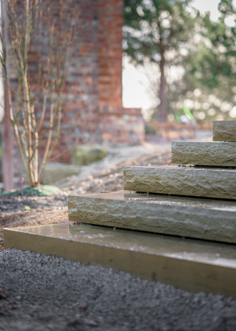 A cut-through formed by large Yorkstone blocks, split using a traditional stitch drill, symbolises the intersection between duty and personal life, and Queen Elizabeth’s II enduring strength as a monarch.