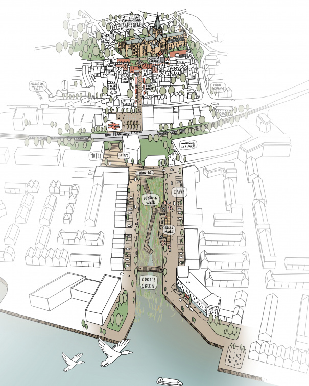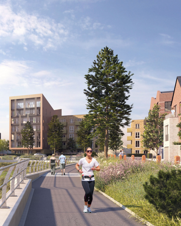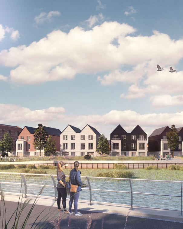Residential-led and mixed-use masterplan, on the River Medway, that includes community-based amenities centred around the new station square and Cory’s Creek.