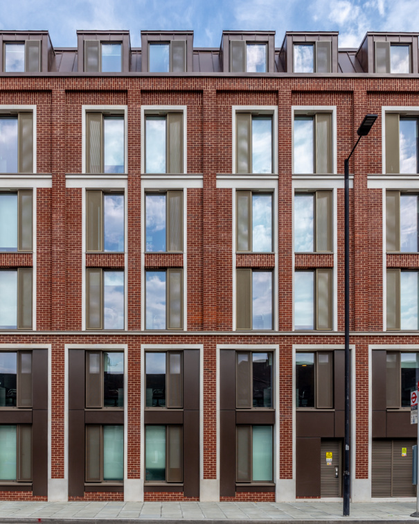 The elevational expression of the building demonstrates how modular construction technology can be used to represent a London vernacular of traditional materials.