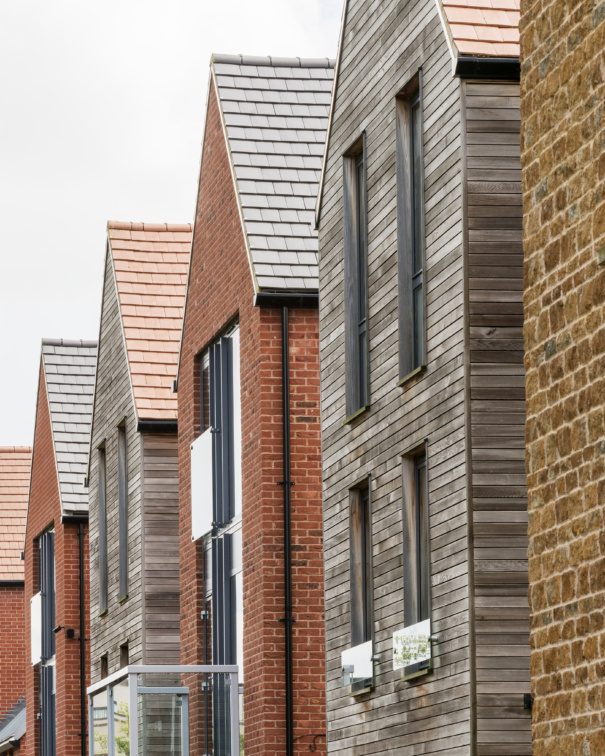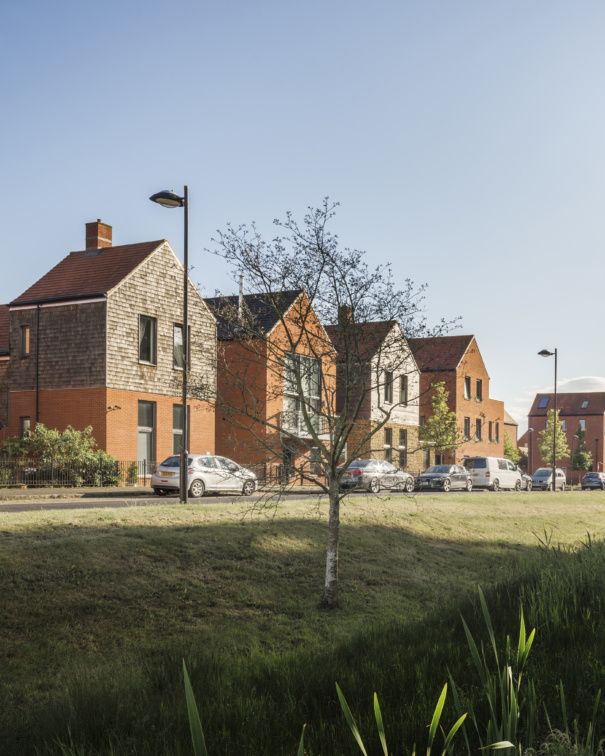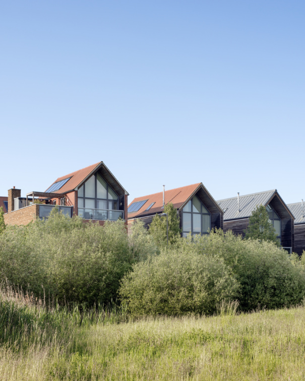 Upton C, is on the edge of the site, looking south across the park and north across a retained strip of woodland. Our design approach made the most of this edge condition by allowing the homes to look out to nature.