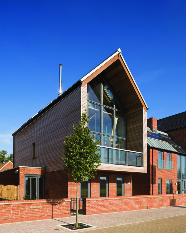 For excellent heating and cooling, the site is arranged so every home is oriented 15 degrees from the south or west axis. Conservatories and living rooms are arranged for solar gain, optimising winter solar collection. To avoid overheating in the summer, shading is created by deep eaves which overhang the gables, provide shade to the interior, and frame the balconies. Natural ventilation has been maximised with double height spaces and roof windows.